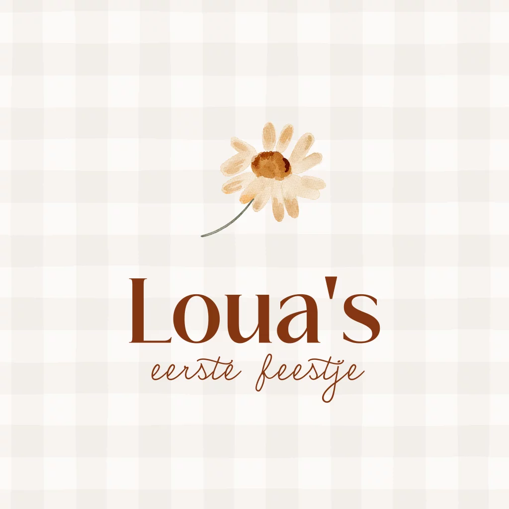 Schattig kaartje voor het eerste feestje van jouw spruit! Dit kaartje meet 8 x 8 cm en kan samen met het geboortekaartje verzonden worden. Pas dit kaartje volledig naar wens aan in de editor.