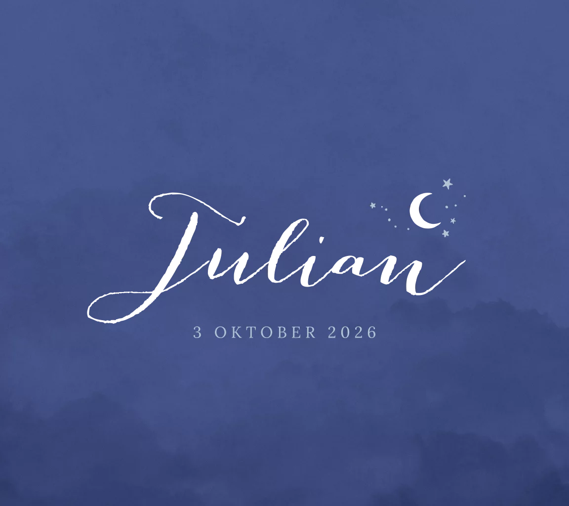 Geboortekaartje jongen met holografische folie, maan en sterren