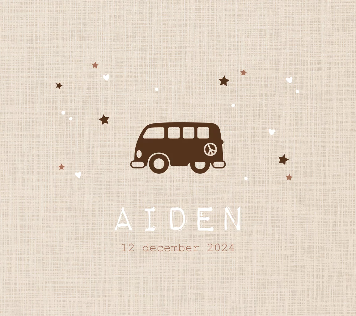 Peace and love, dit geboortekaartje met vredesbusje is ideaal voor de aankondiging van zoon- of dochterlief! Het schattig busje straalt speelsheid uit, terwijl de neutrale kleuren zorgen voor een tijdloze en stijlvolle look.