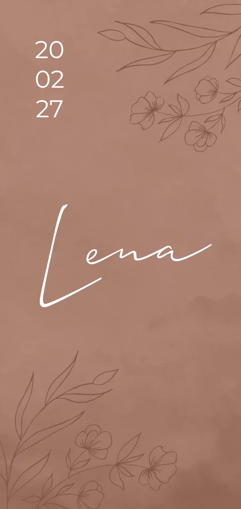 Elegant geboortekaartje met bloemen en naam/datum in rosé goud.