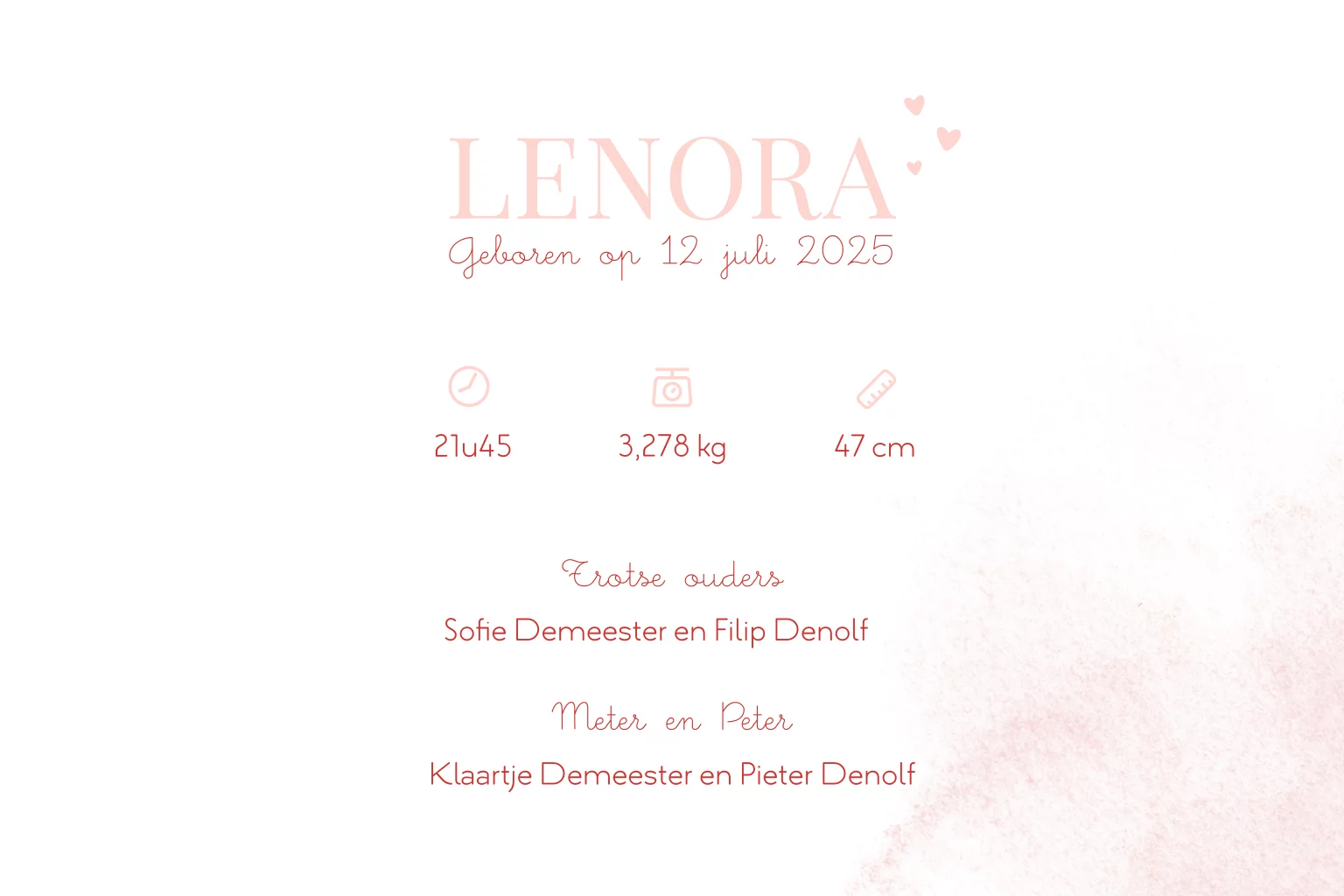Dubbel geboortekaartje met romantisch roze achtergrond