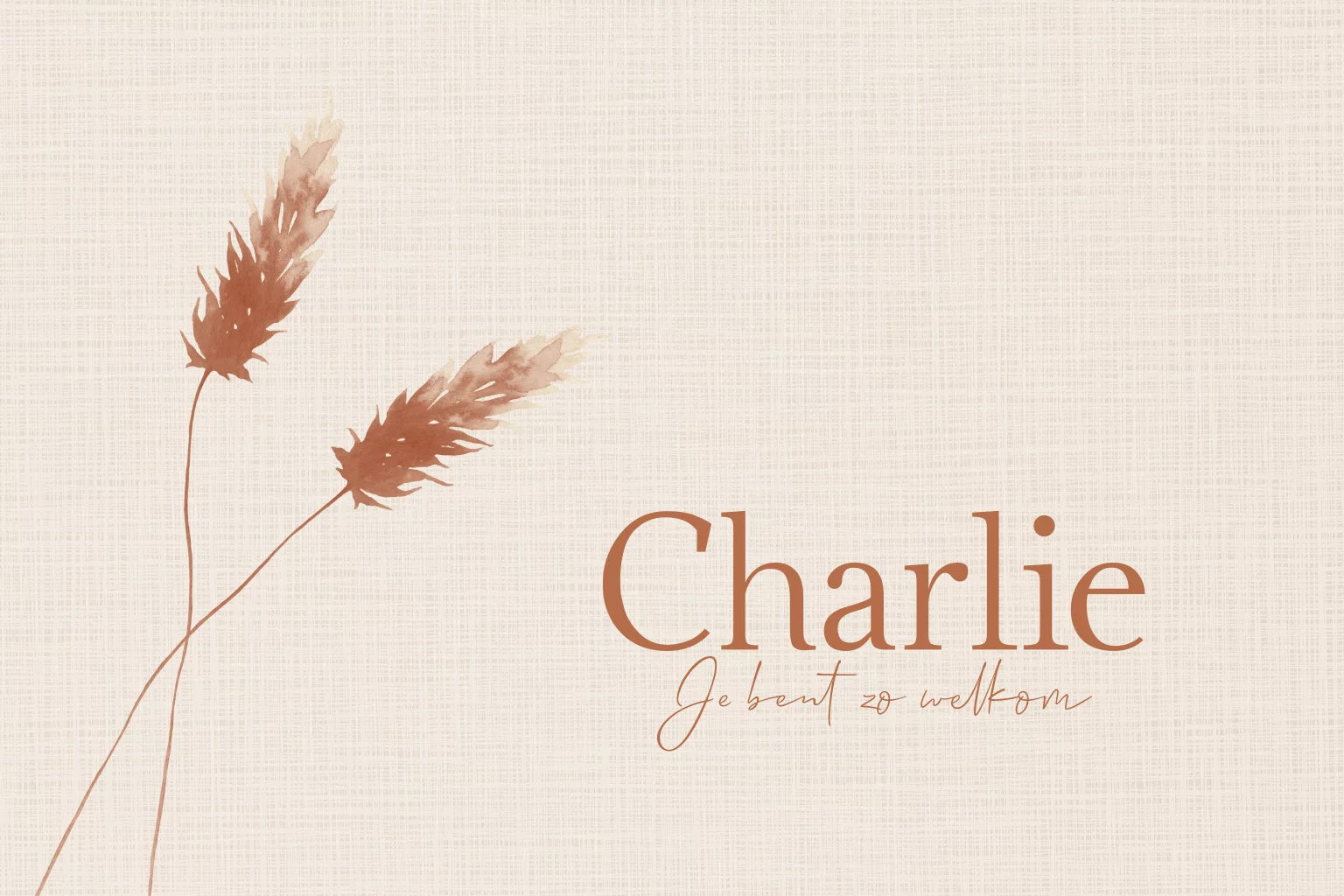 Bohemian, subtiel klassiek geboortekaartje met beige textuur achtergrond en graspluimen