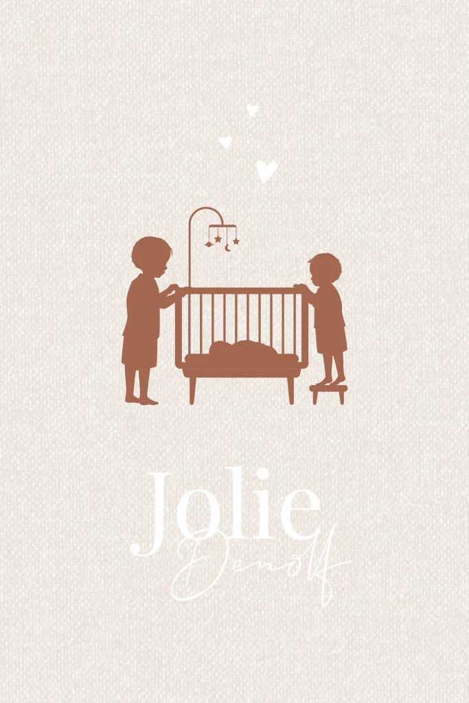 Een zusje of een broertje op komst voor jullie twee kapoenen? Dit geboortekaartje is ideaal ter aankondiging van een derde kindje! Naam en hartjes staan in goudfolie. Pas dit kaartje naar wens aan in de editor.