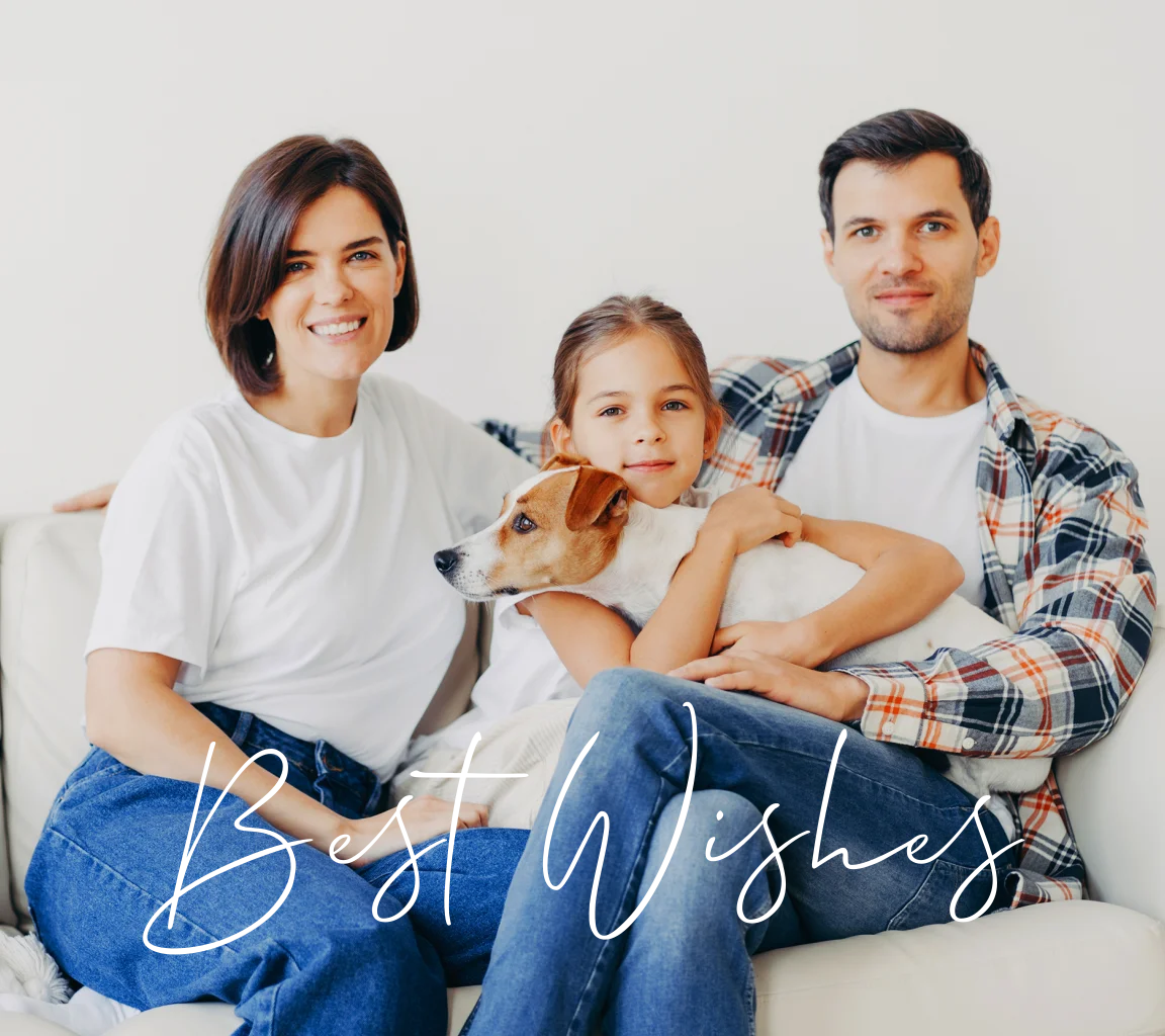 Nieuwjaarskaart met foto en goudfolie op voorzijde.