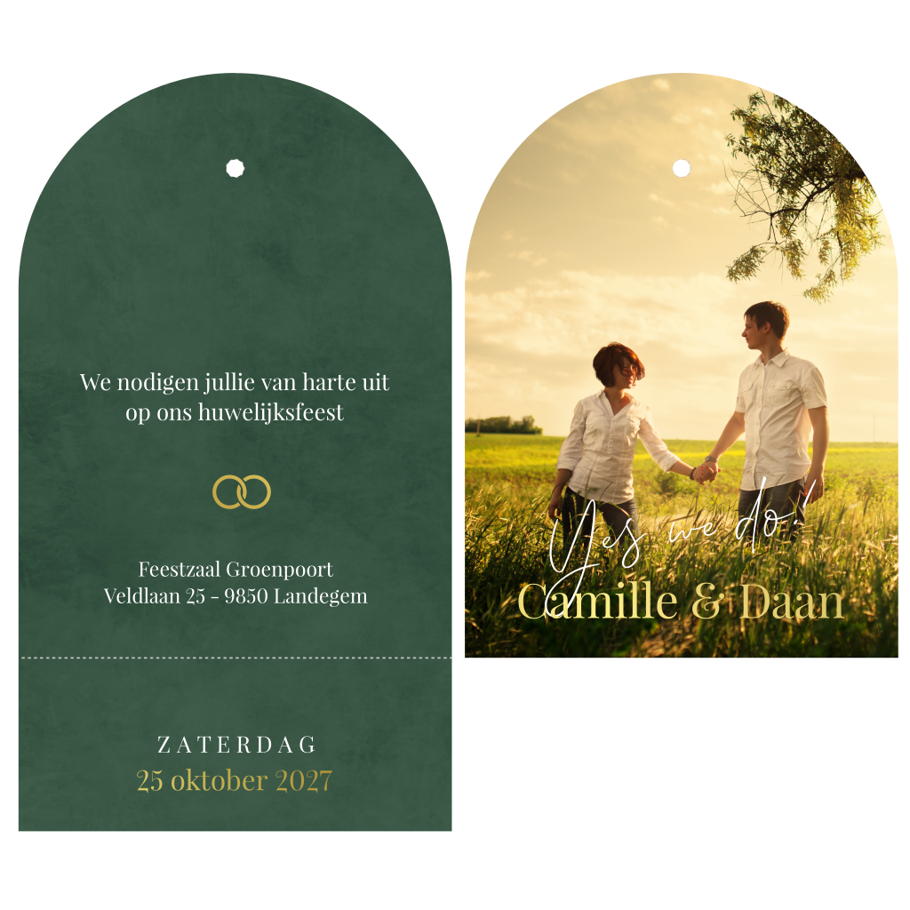 huwelijkskaart stolpvorm labelkaart met splitpen