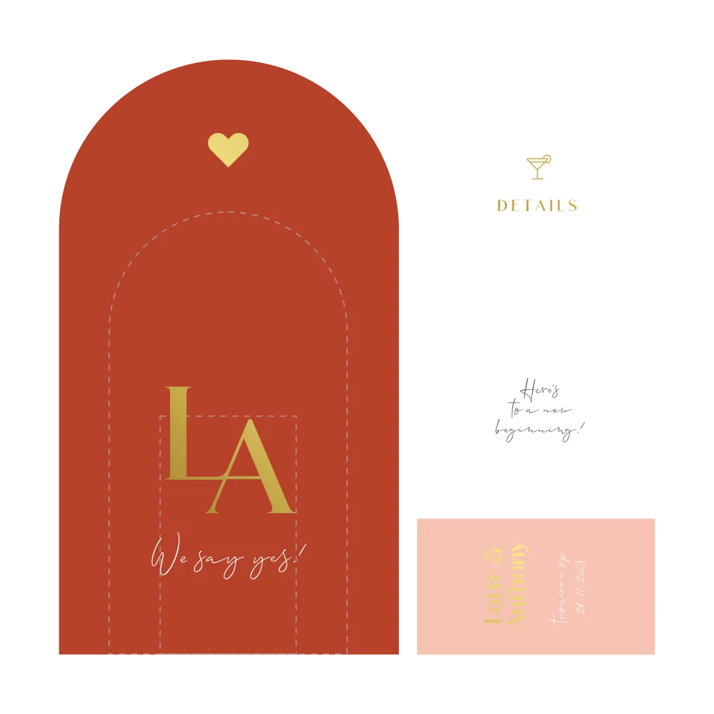 Een set van drie kaarten die je kan stapelen en vast maken met behulp van een paperclip. De kleuren en het lettertype kan je eenvoudig aanpassen in de online editor. De stippellijntjes tonen hoe je deze kaartjes kan stapelen (deze worden niet geprint). De paperclip is niet inbegrepen en moet je apart bestellen, deze vind je ook in onze webshop.