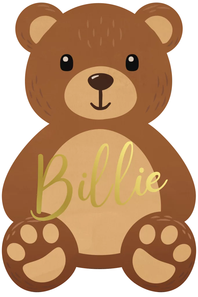 Op zoek naar een origineel kaartje? Dit geboortekaartje heeft de vorm van een teddy beer. De naam van jouw kindje wordt in goudfolie gedrukt.