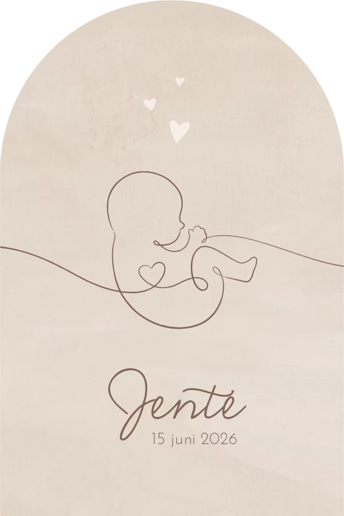 Dit geboortekaartje is ideaal voor de aankondiging van een zoon of dochter. De schattige lijntekening van het babytje bestaat uit één lijn. Pas dit kaartje naar wens aan in de editor.