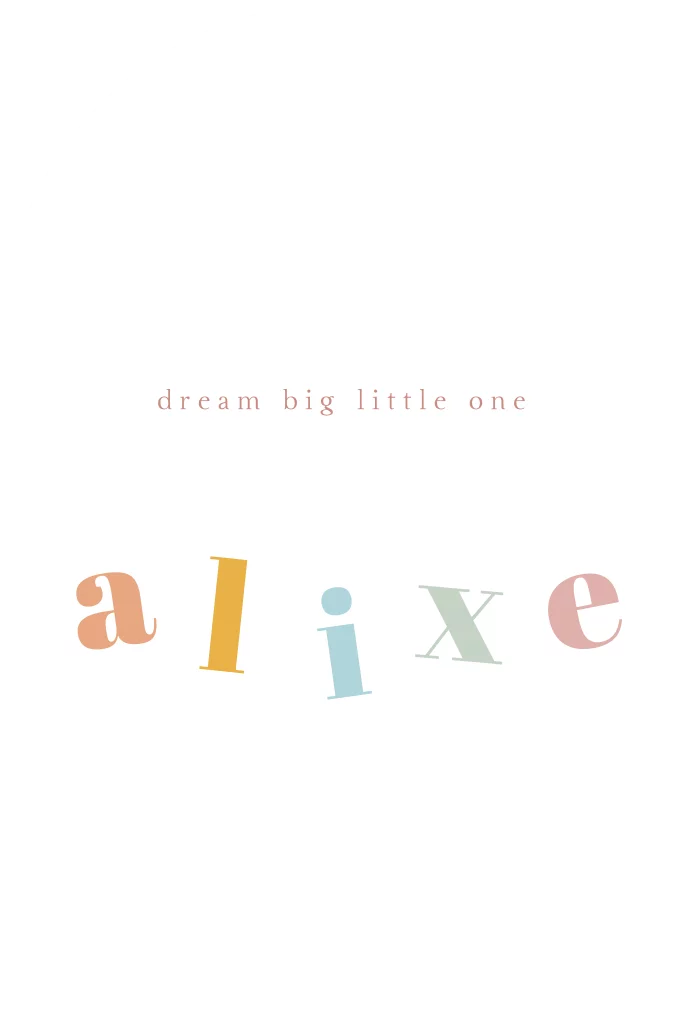 Dit speels geboortekaartje is minimalistisch en o zo kleurrijk. Wees creatief en laat de letters van de naam dansen! Dit kaartje kan je naar wens aanpassen in de editor.