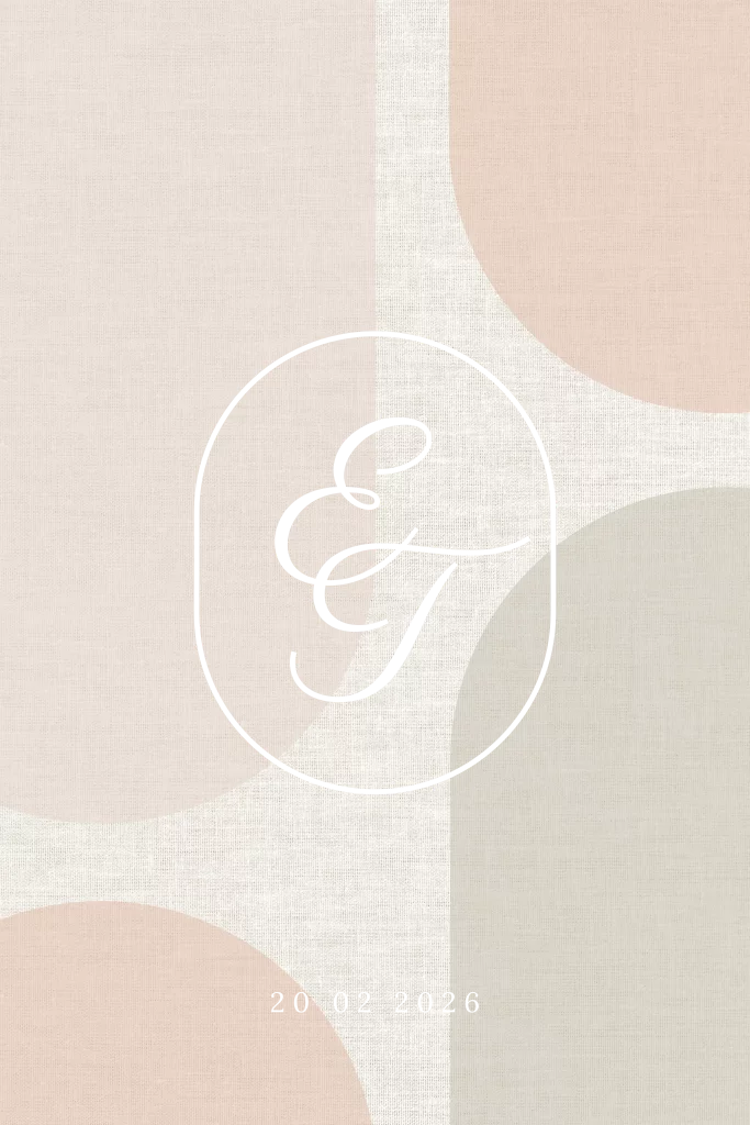 Op zoek naar een trouwuitnodiging met een lichte retro-look? Deze uitnodiging is geschikt voor jong en oud! De centrale focus ligt op de initialen, die schitteren in koperfolie. De zachte pastel kleuren voegen een vleugje rust en elegantie toe.